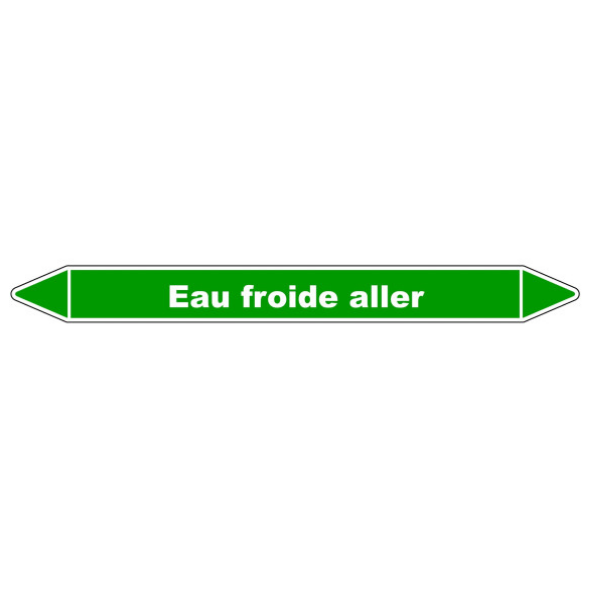 🔺 Marqueur de tuyauterie Eau Froide Aller – Autocollant vinyle rectangle