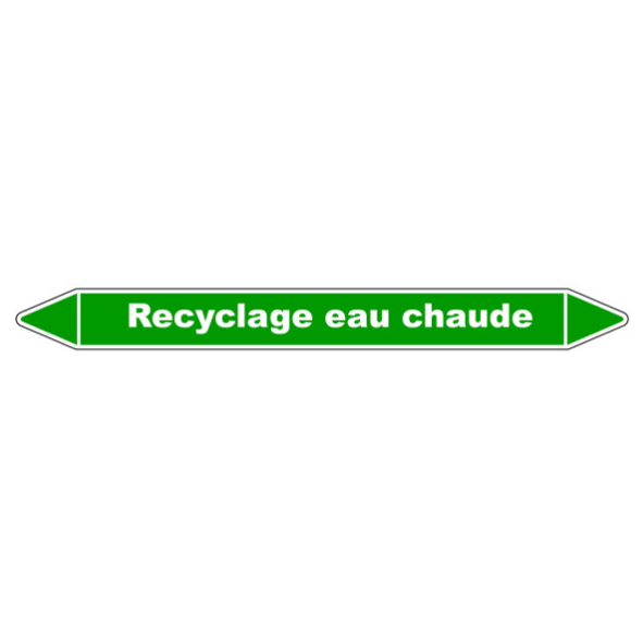 🔺 Marqueur de tuyauterie Recyclage Eau chaude – Autocollant vinyle rectangle